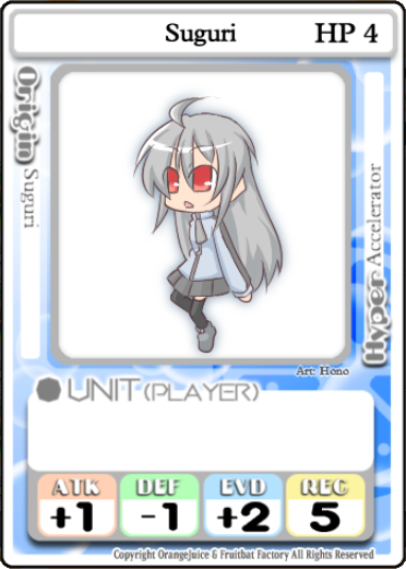 | − | + | Suguri's Unit Card in 100% Orange Juice. | |