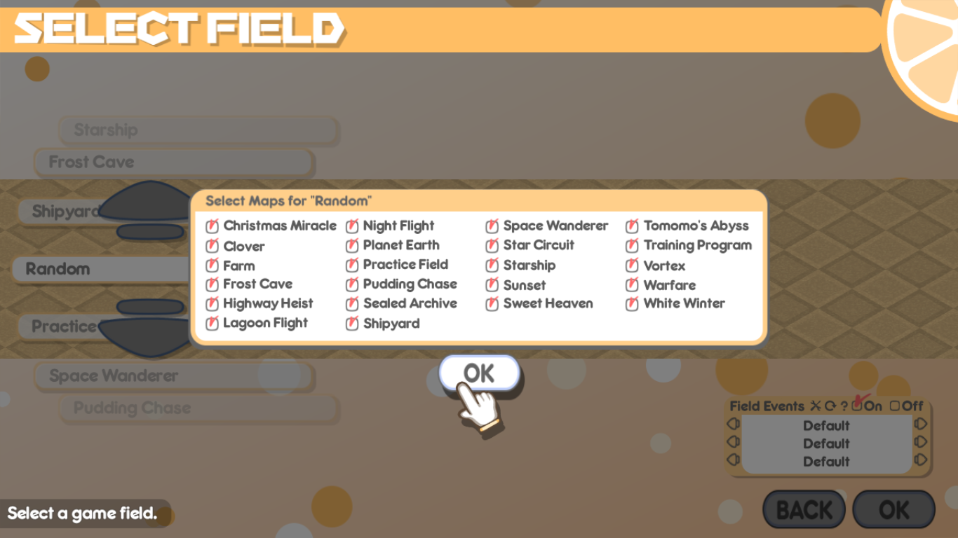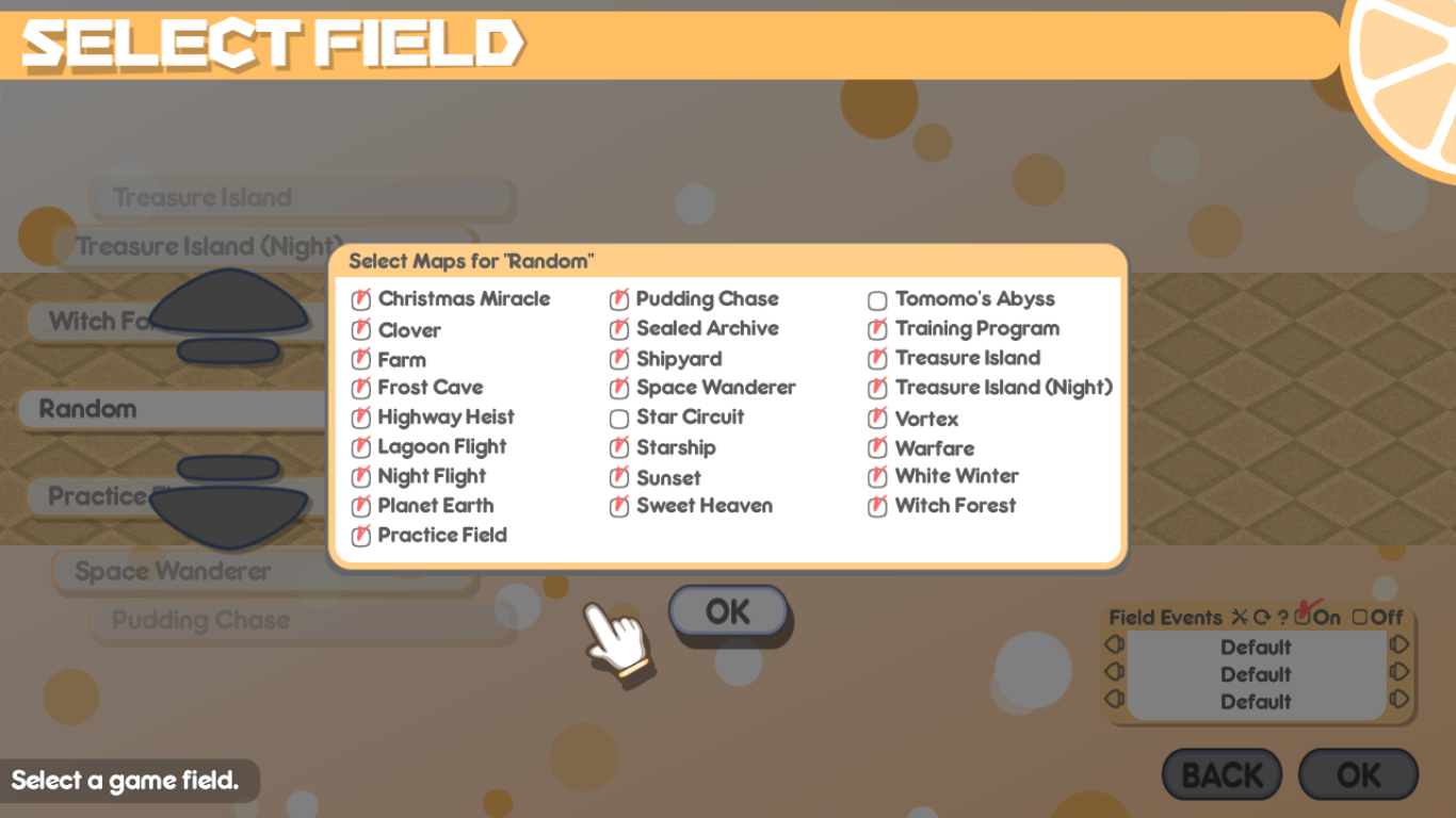Random Field filter option in 100% Orange Juice.
